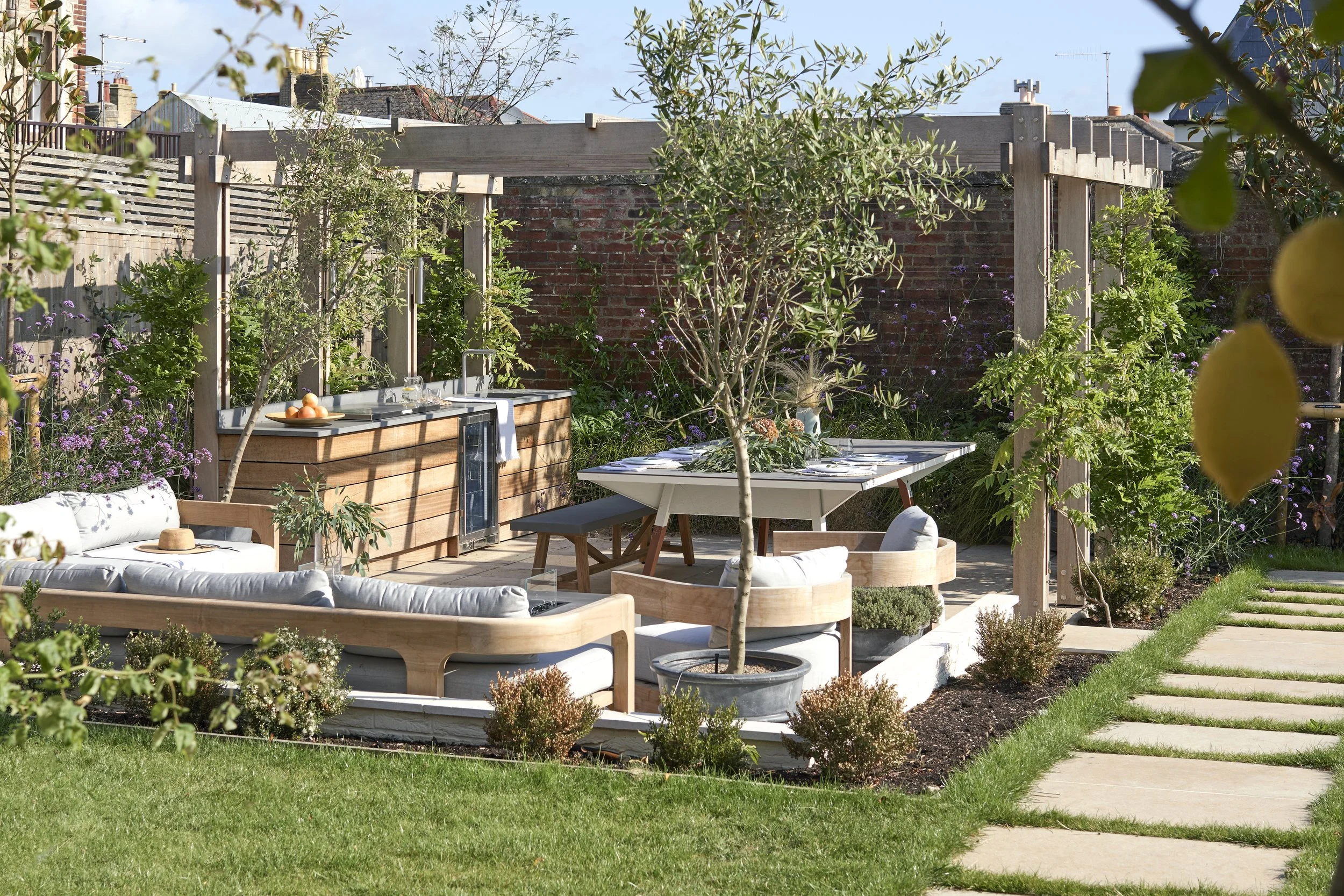 Set within a walled garden, privacy is paramount in this tightly knit seaside village. The existing boundary was carefully retained and completed, while layered landscaping provides an additional veil of seclusion, creating a lush, green retreat that seamlessly connects spaces for relaxation, entertaining, and activity.